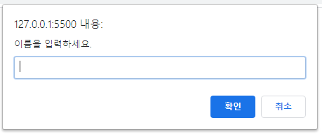 - window.prompt( ) : 사용자에게 메세지를 보여주고, 사용자가 입력한 문자열을 반환한다.