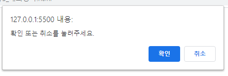 - window.confirm( ) : 사용자에게 메세지를 보여주고, 확인이나 취소를 누르면 그 결과를 불린값으로 반환한다.